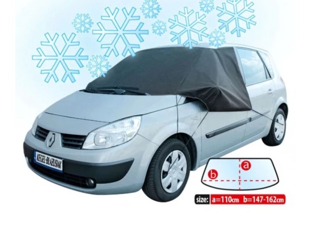 Мы предлагаем вам приобрести чехол для лобового стекла автомобиля. Такой чехол защищает не только лобовое стекло, но и боковые и передние стёкла. Изготовлен данный чехол из водоотталкивающего материала полиэстер, а его размеры составляют 110 х 147 х 162 см. Материал чехла устойчив к минусовым температурам.