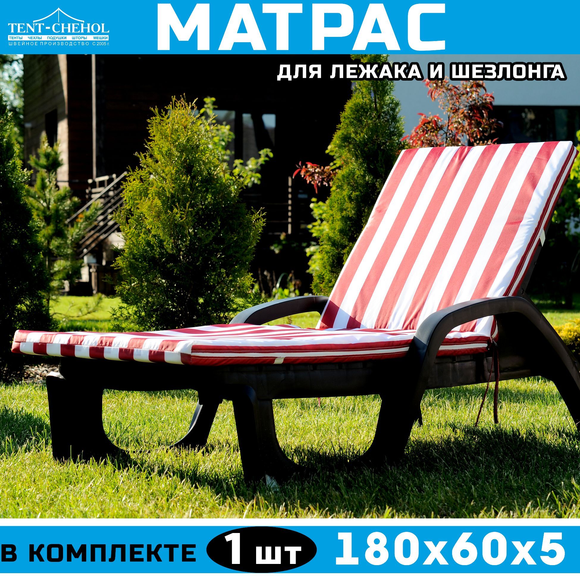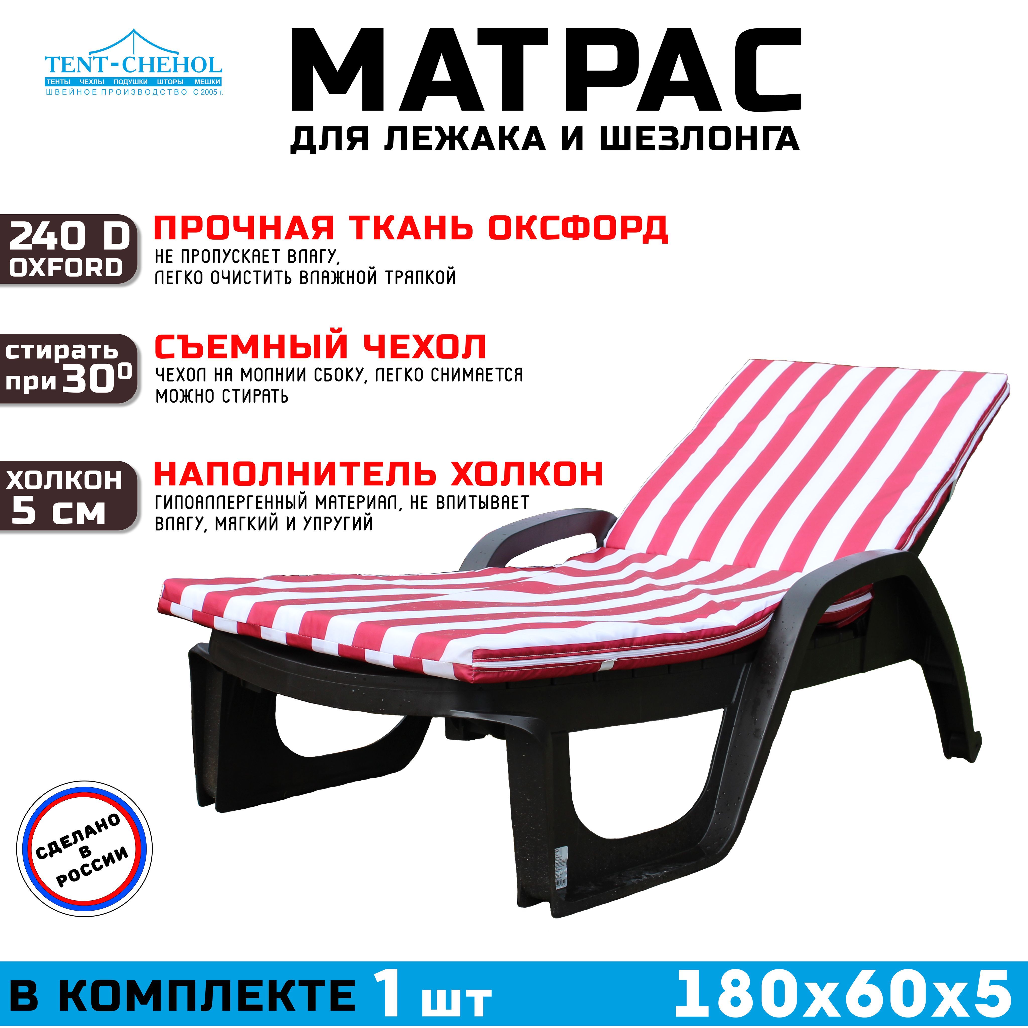 Купить Матрас для шезлонгов 180х60х5 (бело-красный) цена 2100 руб. в Москве и СПб с доставкой по России