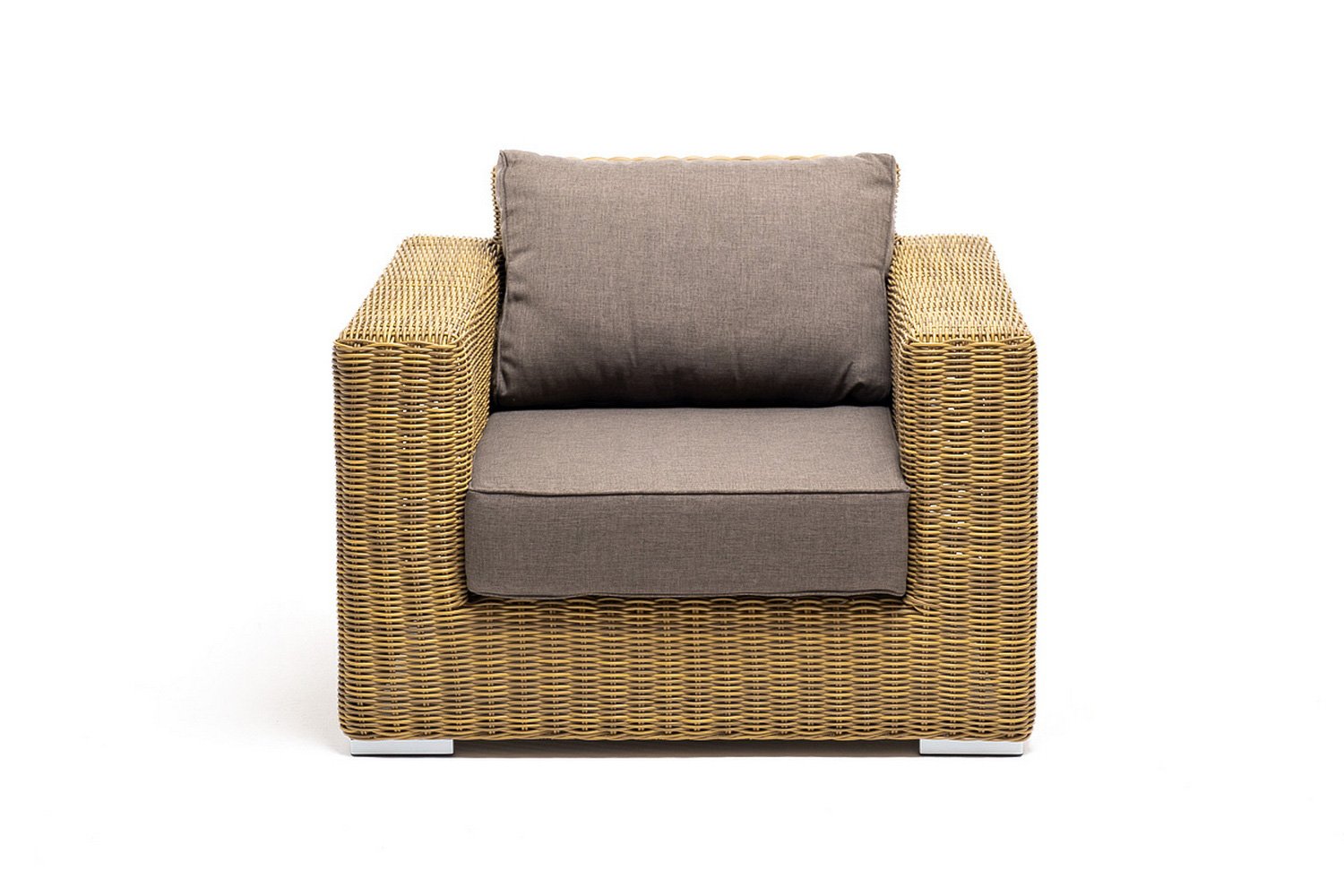 Подушки входят сразу в комплекте с креслом, добавляя особый шарм его внешнему виду и делая его значительно удобнее. Обе подушки облачены в полиэстерный чехол – такое покрытие является съемным, и может быть в любой момент постирано. Материал обладает водоотталкивающими свойствами, не поддается влиянию грязи, осадков и выгоранию.