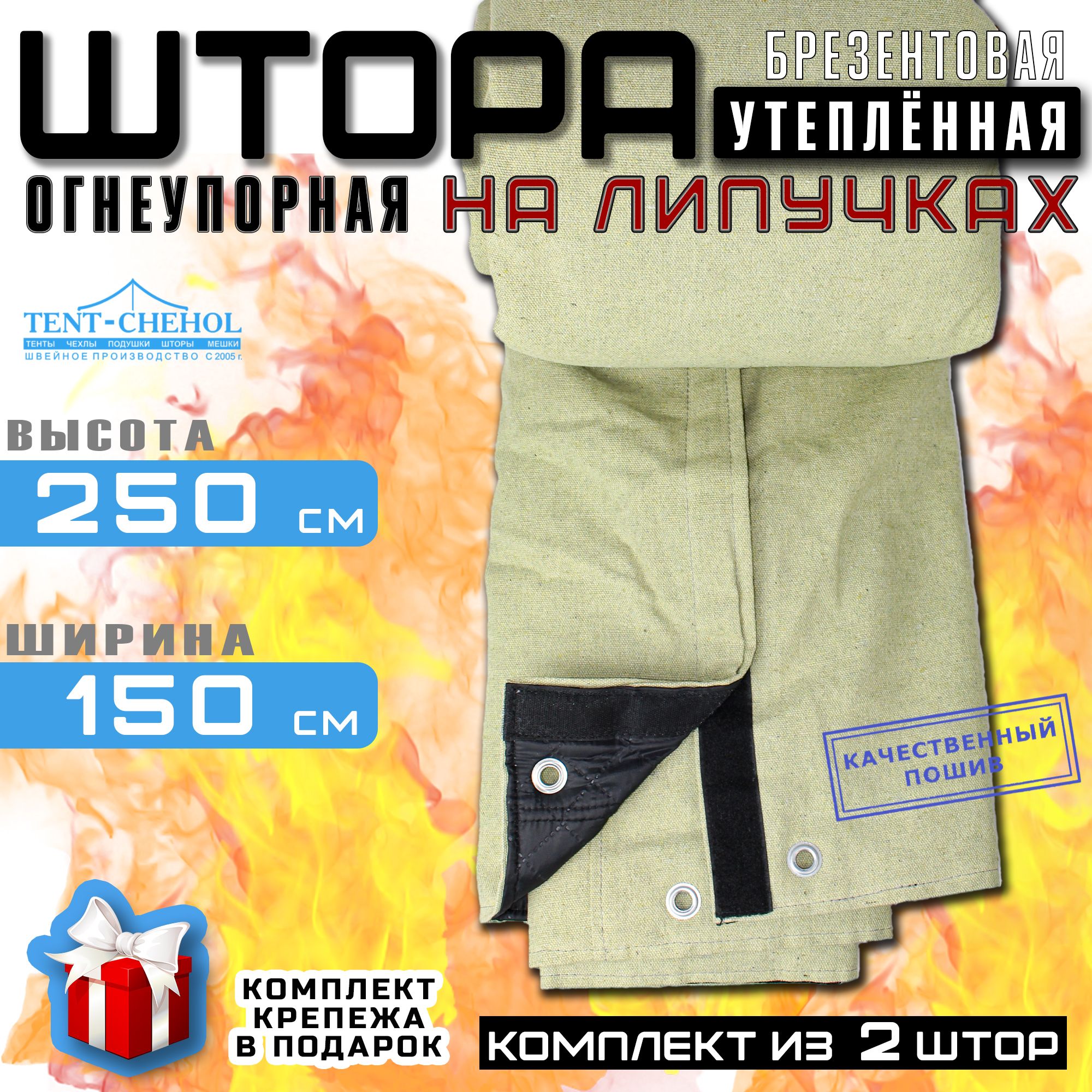 Краткое описание «Брезентовая штора, на липучках, огнеупорная, утепленная, 2,5х1,5 м (2 шт)»