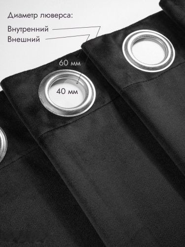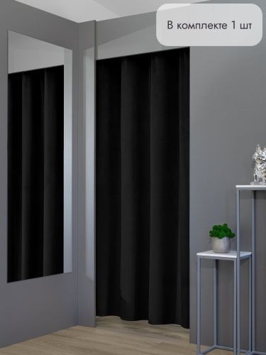 Краткое описание «Штора для примерочной и дома на люверсах бархатная цвет черный, 1 шт.»
