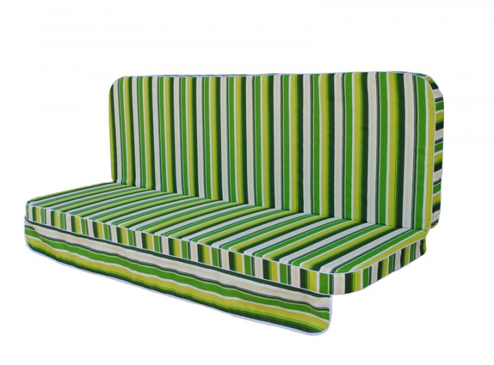 Данный матрас предназначен для садовой качели. Такие матрасы изготавливаются из универсальных тканей, изготовленных в Испании. Благодаря тому, что в такой ткани огромный процент натуральных волокон, она замечательно пропускает воздух, а также является максимально приятной на ощупь. Эта ткань устойчива к появлению пятен, она с лёгкостью разглаживается. Наполнитель изготовлен из пенополиуретана вторичного вспенивания. Спинка, а также сиденье матраса выполнены на молнии, поэтому наполнитель с лёгкостью можно вынуть, а чехол легко можно постирать. Для того, чтобы матрас надёжно держался на качели, на нём есть специальные завязки по бокам.