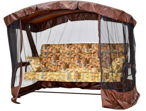 Вы можете приобрести тент, предназначенный для садовых качелей ПАРИЖ, данный тент выполнен в шоколадном цвете. Данный тент подойдёт для садовых качелей, имеющих размер 240 х 143 х 187 см. Такой материал совершенно не пропускает влагу, тент совершенно не загрязняется, а при необходимости с лёгкостью очищается. При сильном ветре тент рекомендуется снимать для того, чтобы его не унесло.