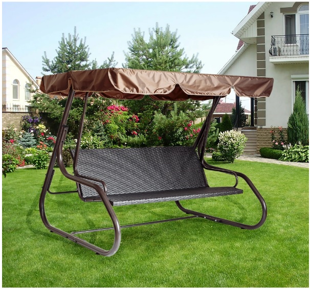 Садовые качели "Сантино" - практичные садовые качели имеющие элегантный дизайн. Три посадочных места. Искусственный ротанг, из которого изготовлено сиденье и спинка, не требует специального ухода. Достойно дополнят уголок отдыха на вашей даче.