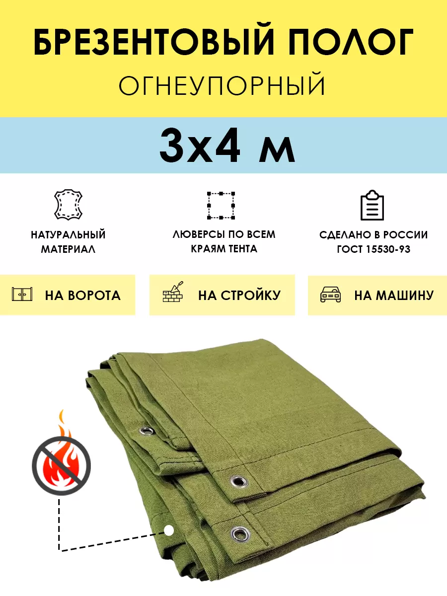Краткое описание «Полог брезентовый огнеупорный 3x4 м, с люверсами (стандарт)»